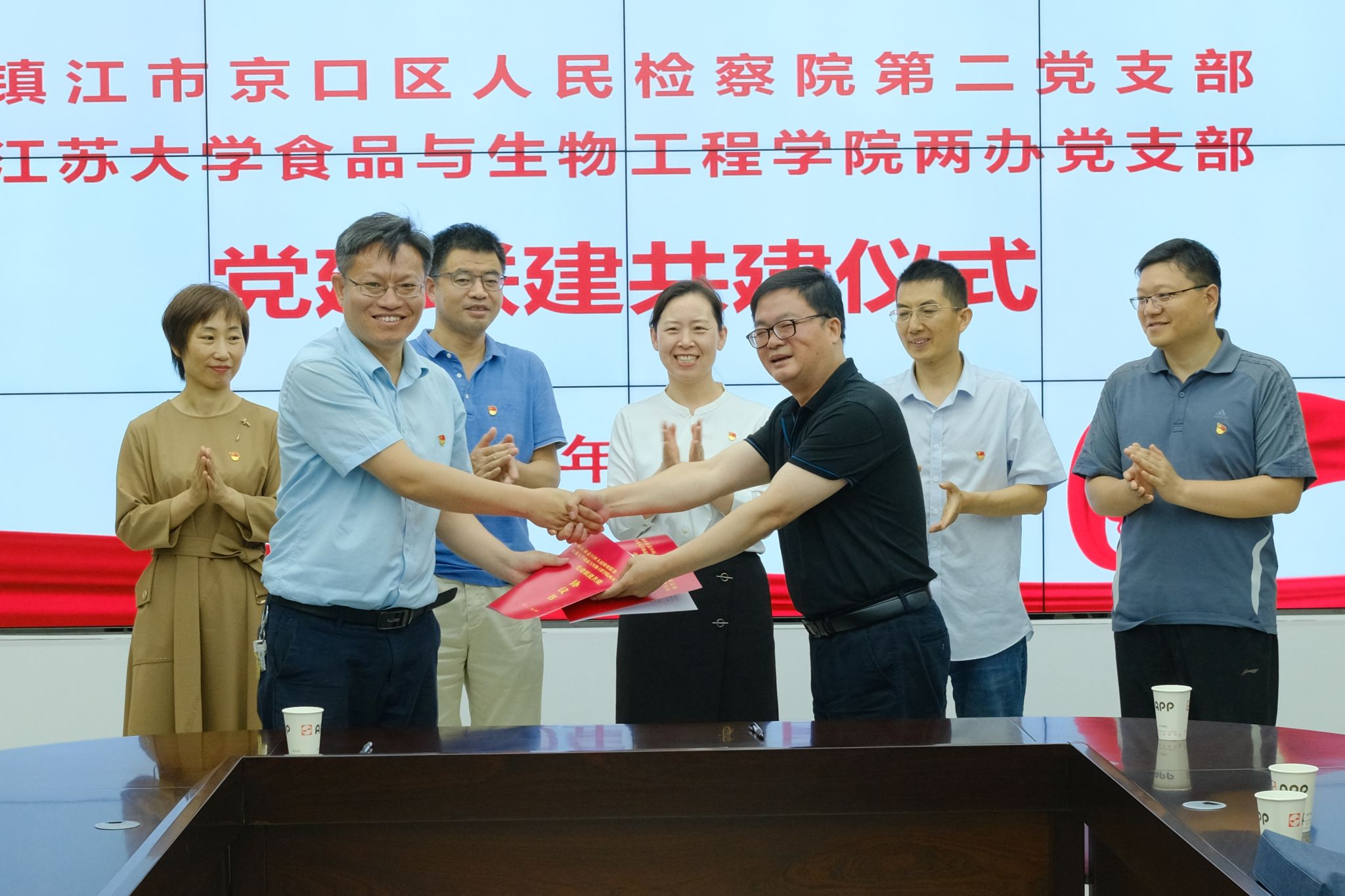 为进一步探索党建工作模式,拓展校地合作新领域,巩固拓展党史学习教育成果,6月8日,英国365集团两办党支部与京口区检察院第二党支部签署校检合作共建协议。京口区检察院党组成员、政治部主任、党总支书记杨钰,党总支副书记、第二党支部书记张波,365英国上市公司党委书记万由令,两办党支部全体党员及师生党员代表参加签约仪式。