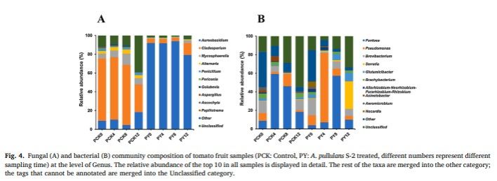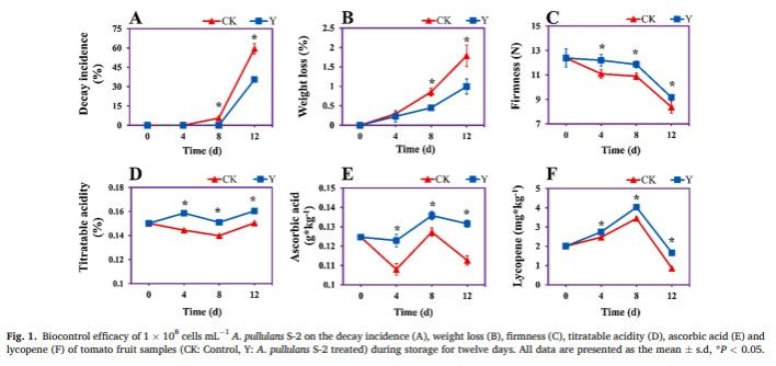 近日,365英国上市公司张红印教授在国际食品领域顶级期刊Postharvest Biology and Technology在线发表题为“Aureobasidium pullulans S-2 reduced the disease incidence of tomato by influencing the postharvest microbiome during storage”的研究论文(https://doi.org/10.1016/j.postharvbio.2021.111809),研究了出芽短梗霉对番茄采后病害的控制效果及其对番茄表面微生物组的影响。本文的第一作者为365英国上市公司时雨博士,英国365集团张红印教授和以色列农业研究组织Samir Droby教授为本文的共同通讯作者,张红印教授课题组的其他六位师生参与论文工作。
