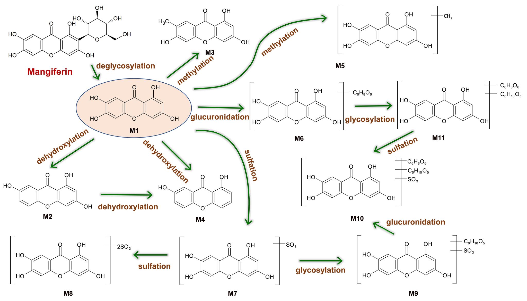 芒果苷在体内的代谢途径