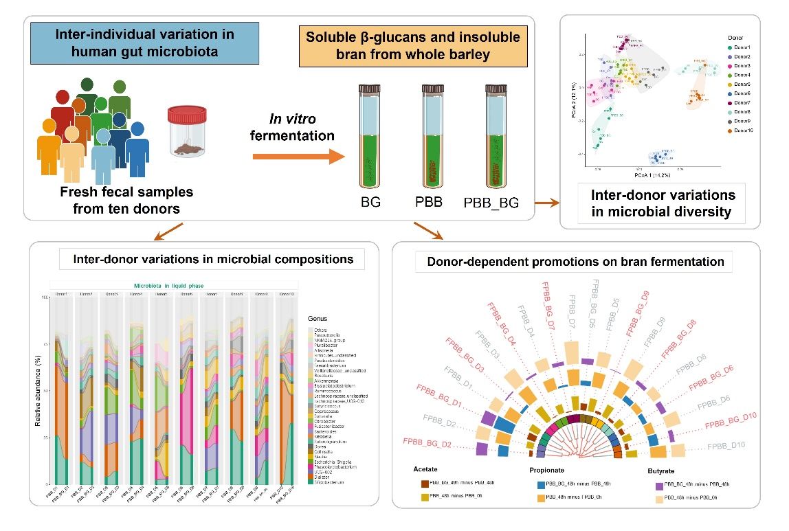 近日,我院肖香教授、范松涛讲师在在国际Top期刊《Food Hydrocolloids》(Q1,IF2023:11.0)上发表论文“Inter-individual variation in human microbiota drives differential impacts on the fermentability of insoluble bran by soluble β-glucans from whole barley”。英国365集团为第一完成单位,英国365集团范松涛讲师和22级硕士研究生丁怡炜为该文共同第一作者,肖香教授为该文通讯作者。