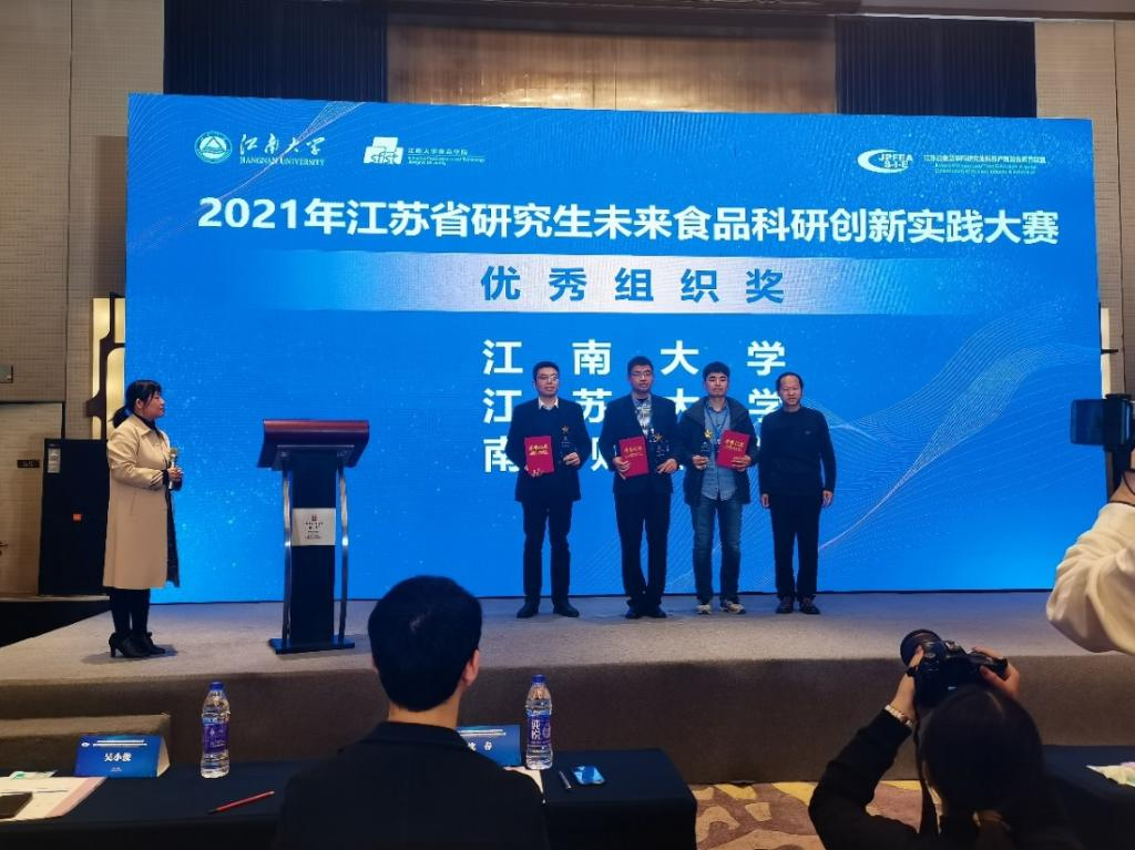 12月5日,2021年江苏省研究生未来食品科研创新实践大赛总决赛在江南大学举行。本次大赛以“营养、健康、可持续”为主题,围绕新型食品原料、食品新型加工、食品精准营养等未来食品安全、未来食品营养、未来食品加工三大领域的交叉前沿研究与应用开展。本届大赛由江苏省工学4类研究生指导教育委员会主办,江南大学承办,历经两个月,共有来自江苏省8所高校的76个项目报名参赛,最终仅有30个项目入围决赛现场比赛。我校共推选23支队伍参赛,其中9支队伍入围决赛,入围决赛的队伍数和江南大学并列第一。决赛期间,365英国上市公司院长邹小波教授、副院长张红印教授、科研秘书郎涛老师带队参加。经过激烈角逐,最终获得一等奖1项(共3项),二等奖1项,三等奖2项,优秀奖5项,成绩名列前茅。我校同时获得优秀组织奖。