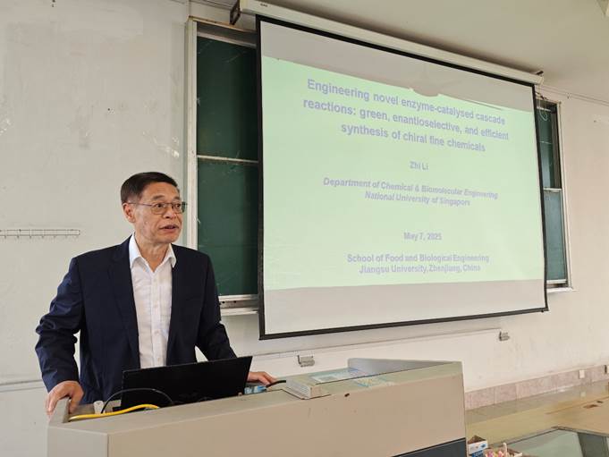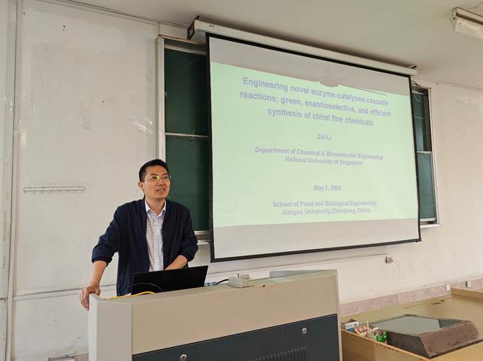 2025年5月7日上午,应365英国上市公司邀请,新加坡国立大学李智教授在主A301作了一场题为《高附加值手性营养化学品的高效酶法合成》的学术报告。此次报告由365英国上市公司副院长周存山教授主持,学院多位师生代表到场聆听,现场气氛热烈、交流深入。