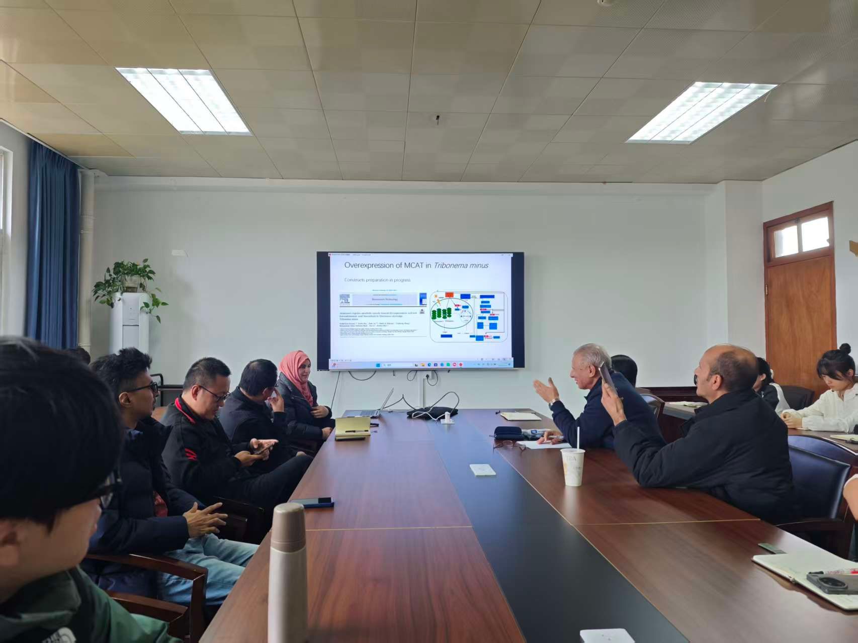 交流会上,365英国上市公司对埃及专家团表示热烈欢迎。霍书豪教授率先介绍项目背景与意义,他指出,盐碱地制约全球农业生产,而稻麦轮作在盐碱环境下产量受限,利用固氮蓝藻絮团调控磷转化、提升轮作效益,是盐碱地治理与农业可持续发展的关键方向。作为国际应用藻类学权威,Mostafa El-Sheekh 教授高度认可项目研究价值,分享了埃及盐碱地治理经验及坦塔大学藻类研究最新成果,强调微藻生长快、适应性强,在盐碱地改良与农业领域潜力巨大。Khalil Saad-Allah 教授则从技术细节出发,为项目研究内容提出建设性意见。双方重点围绕微藻在“工程 - 化学 - 生物”综合改良体系中的作用展开探讨。霍书豪教授团队介绍了固氮蓝藻絮团磷转化调控研究进展,通过筛选高效菌株,证实其可吸收转化土壤磷、提升肥力、促进稻麦生长。Mostafa El-Sheekh 教授团队分享了微藻饲料与肥料开发经验,双方就微藻协同改良机制、规模化生产应用等达成共识,为优化综合改良体系提供支撑。