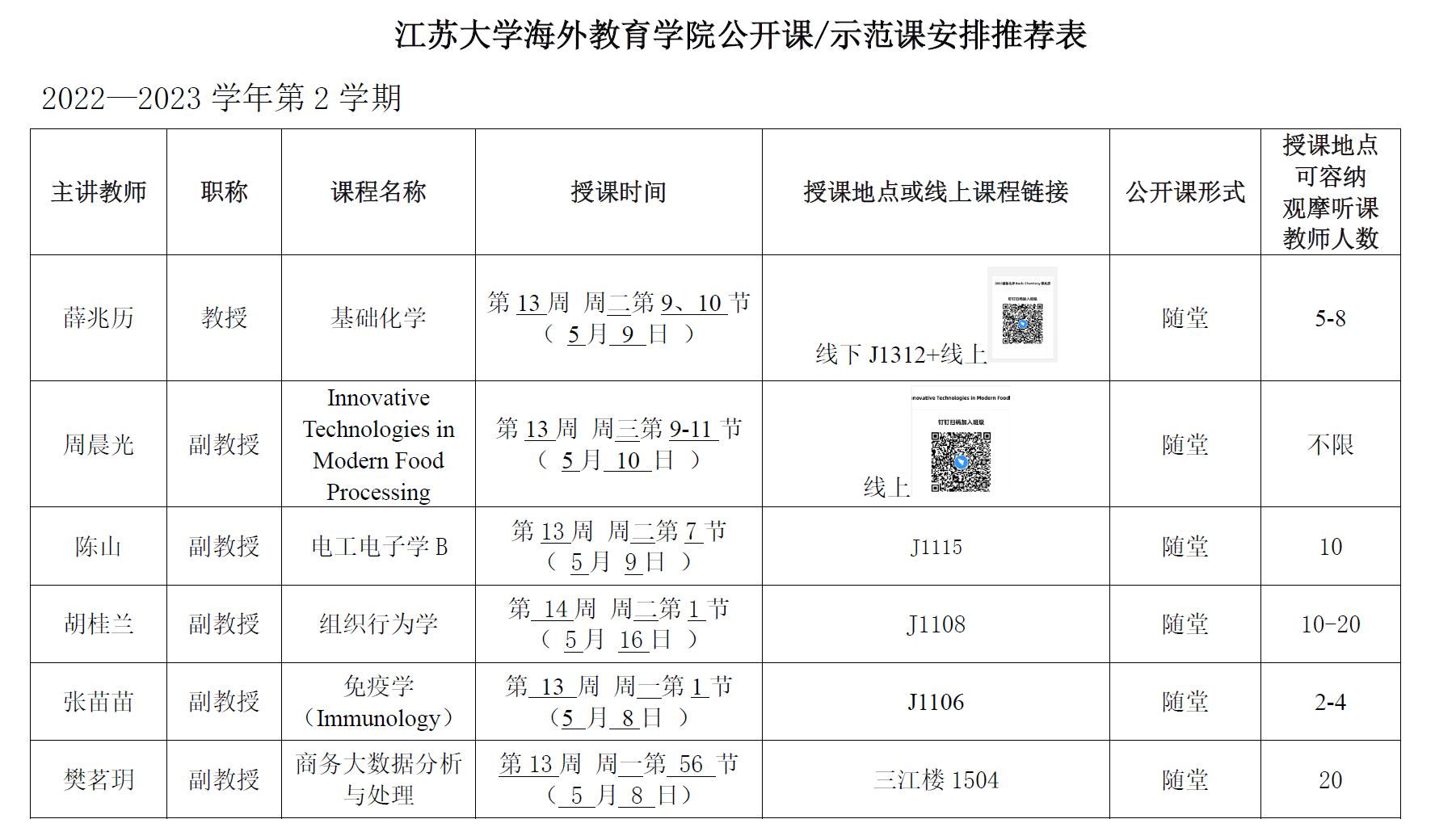 为响应海外教育学院(以下简称海院)号召,促进学院教师全英文教学能力与水平的提升,近期365英国上市公司动员、组织教师在线上或线下观摩海院英文公开课。海院英文公开课安排如下图所示: