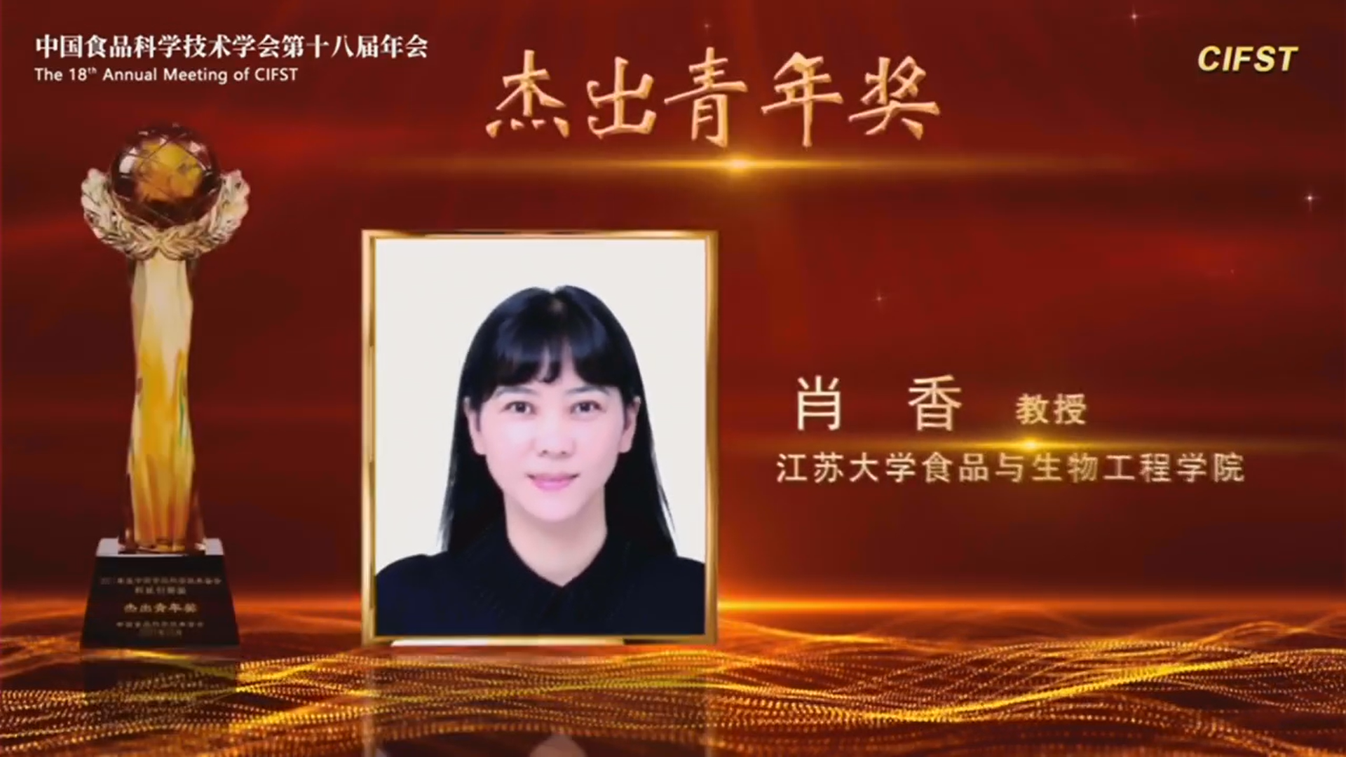 中国食品科学技术学会科技创新奖是由中国食品科学技术学会设立,经科技部和国家科学技术奖励工作办公室批准登记的社会力量奖,每两年评审一次,旨在表彰在食品科技及相关领域科学技术工作中做出突出贡献、取得重要突破的科技工作者。邹小波教授从事食品、农产品无损检测研究20余年,着力开展食品、农产品品质安全智能化检测前沿新技术与新装备研究,形成了理论攻关、技术突破和装备创制三位一体的鲜明特色,为我国食品智能制造与无损检测技术研究的发展做出了突出贡献。肖香教授近年来围绕特色果蔬、谷物等原料的功能提升、加工技术创新、高值化利用等开展系统性研究,取得多项关键技术突破。研究成果在多家规模化企业实现技术应用和成果转化,做到食品科技服务产业发展需求。