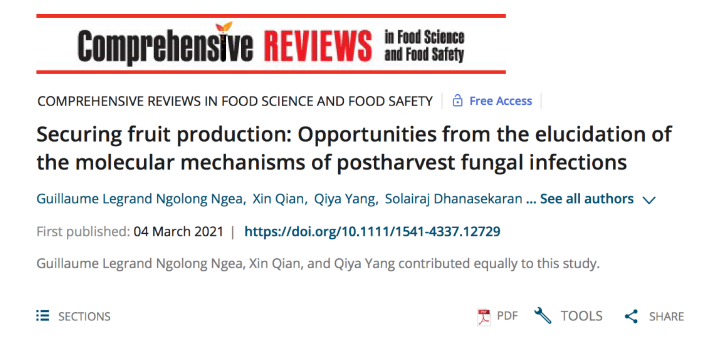近日,365英国上市公司张红印教授在Comprehensive Reviews in Food Science and Food Safety在线发表题为“Securing fruit production: opportunities from the elucidation of the molecular mechanisms of postharvest fungal infections”的综述(http://doi.org/10.1111/1541-4337.12729),系统阐述了病原菌侵染水果的分子机制及其防治策略方面的最新研究进展,该成果已被《食品科学》公众号(https://mp.weixin.qq.com/s/ze9IG8Q8TrRYFBGmcmu84w)推送,并被网易(https://www.163.com/dy/article/G4IUIETB0530N4P3.html)、今日头条(https://www.toutiao.com/i6937171261021831688/)、新浪微博等媒体广泛报道,产生了较大的学术影响。英国365集团博士后Guillaume Legrand Ngolong Ngea、硕士生钱鑫、副教授杨其亚为文章的并列第一作者;英国365集团张红印教授和意大利莫利泽大学Raffaello Castoria教授为本文的共同通讯作者。