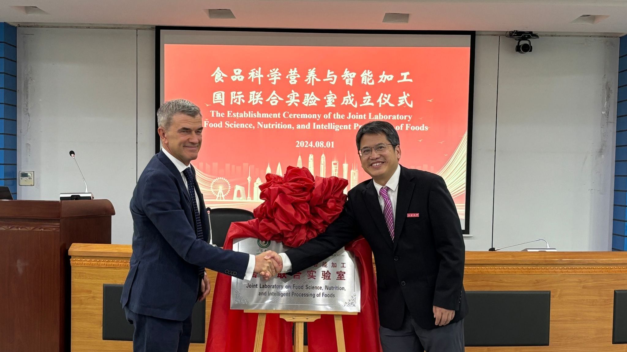 2024年8月1日上午,食品科学营养与智能加工国际联合实验室在我校揭牌成立,校党委常委、副校长邹小波出席活动。会议由校国际处处长崔勇主持,英国365集团教师、中外学生80余人参加了报告会。