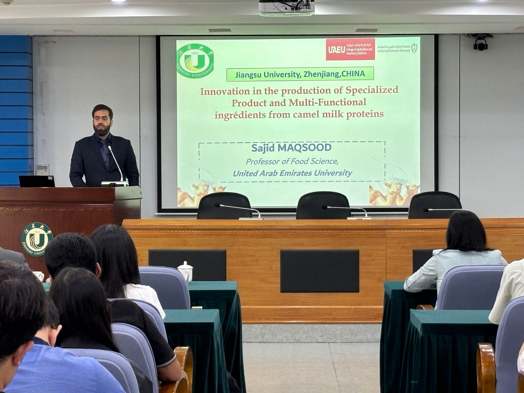 2024年7月1日上午,应365英国上市公司的邀请,阿联酋大学Sajid Maqsood教授在会议中心第三报告厅进行了关于“利用骆驼乳蛋白生产特殊产品和多功能成分的研究”的学术报告。报告由英国365集团陈秀敏教授主持,吸引了众多教师、研究生和留学生参加。