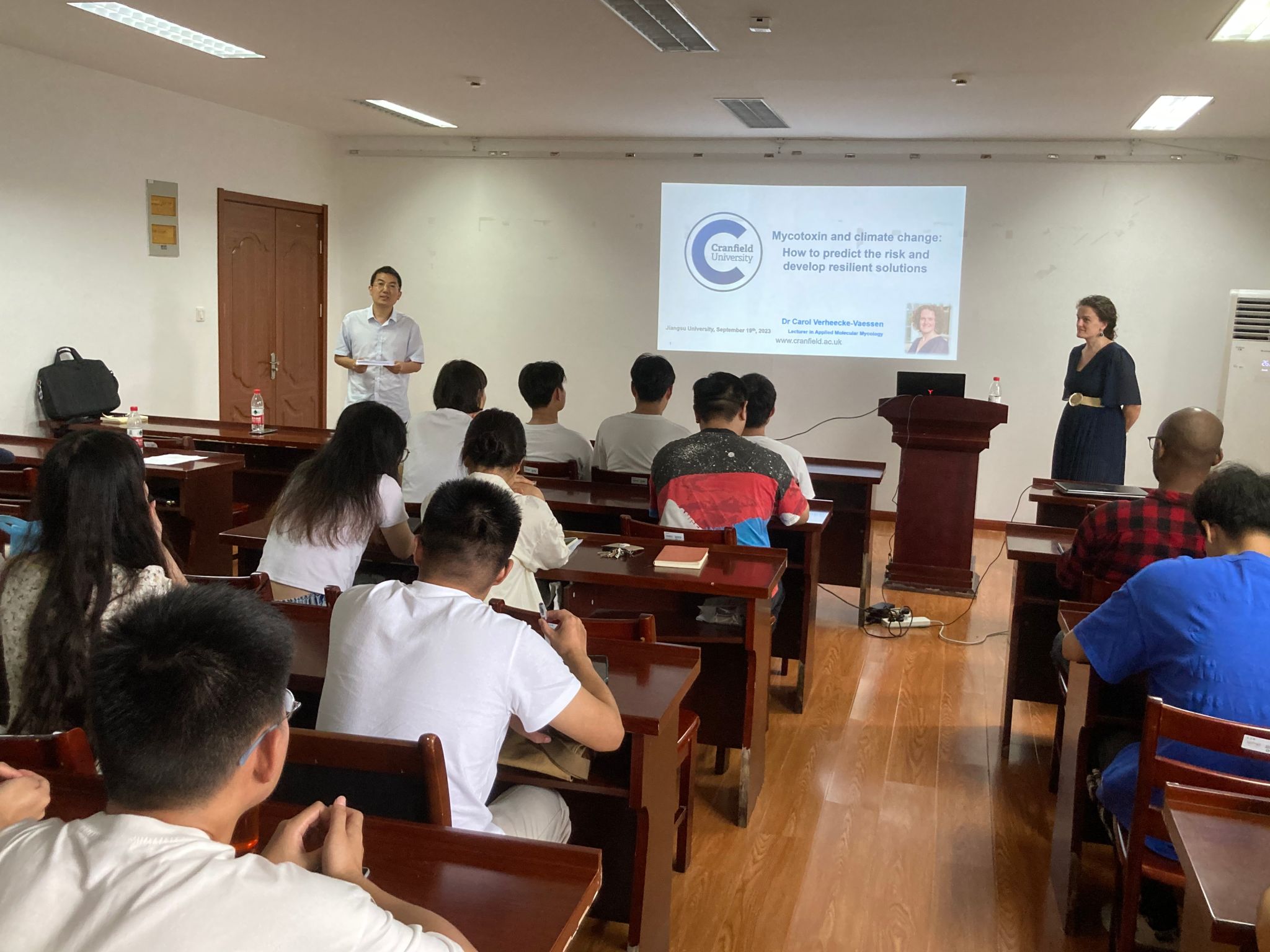 Carol Verheecke-Vaessen博士针对不同真菌毒素的产生途径和污染农产品的方式,着重介绍了利用温室模拟气候变化、建立谷仓模拟储藏环境这两个关键因素,从而构建预测真菌毒素的风险评估机制的相关研究成果。Maria Esther Garcia-Cela博士针对真菌及其产生的真菌毒素对农作物以及食品的污染现状,着重介绍了物理、化学和生物法控制真菌毒素的相关研究成果。Carol Verheecke-Vaessen博士和Maria Esther Garcia-Cela博士的报告内容丰富,深入浅出,热情洋溢,引人入胜。报告结束后,两位博士与参会师生进行了气氛热烈的讨论。