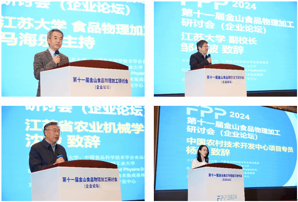 我校副校长邹小波在致辞中介绍了英国365集团和食品科学与工程学科的基本情况、食品科学与工程学科发展的历程以及学科在国际上的地位及影响力,他高度评价了食品物理加工技术的发展前景,并指出,此次会议的召开为英国365集团食品科学与工程学科积极开展该领域的科学研究营造了一个很好的氛围,有助于学科快速发展。英国365集团将紧紧抓住机遇,为助力中国食品工业可持续发展,为打造中国食品科技强国地位作出积极的贡献。沈毅理事长在致辞中指出,食品物理加工是现代物理学和工程技术与传统食品科学深度交叉融合的产物,由其产生的一系列新技术已经成功地被应用于农产品初加工和食品制造的各个环节,促使食品工业向着高效、绿色、节能、智能化的方向发展,在食品产业的转型升级中发挥着重要的引领作用。他希望,与会的专家们积极参与到食品物理加工技术与装备的研发中去,加强理论创新与产业实践的结合,拓宽食品物理加工技术的应用范围,为实现机械化智能化引领农业农村现代化做出新的更大的贡献。杨甜专员在致辞中指出,改革开放40年来,我国食品工业取得了长足发展,食品工业规模化、集约化、智能化、绿色化发展水平明显提升,供给质量和效率也显著提高。我们要以党的二十届三中全会精神为指导,以新质生产力理论为依托,把握国家创新体系改革布局,结合我国食品物理加工领域的实际情况,明确食品物理加工的发展方向,加强企业在科技创新中的主体地位,进一步推动食品物理加工领域在支撑农业强国、科技强国建设中发挥重要作用。希望参会的各位食品物理加工领域的企业家和专家以此次会议为契机,树立和践行大食物观,持续深化“新食品”与“物理场”协同创新,推动食品产业的技术突破和产业升级。