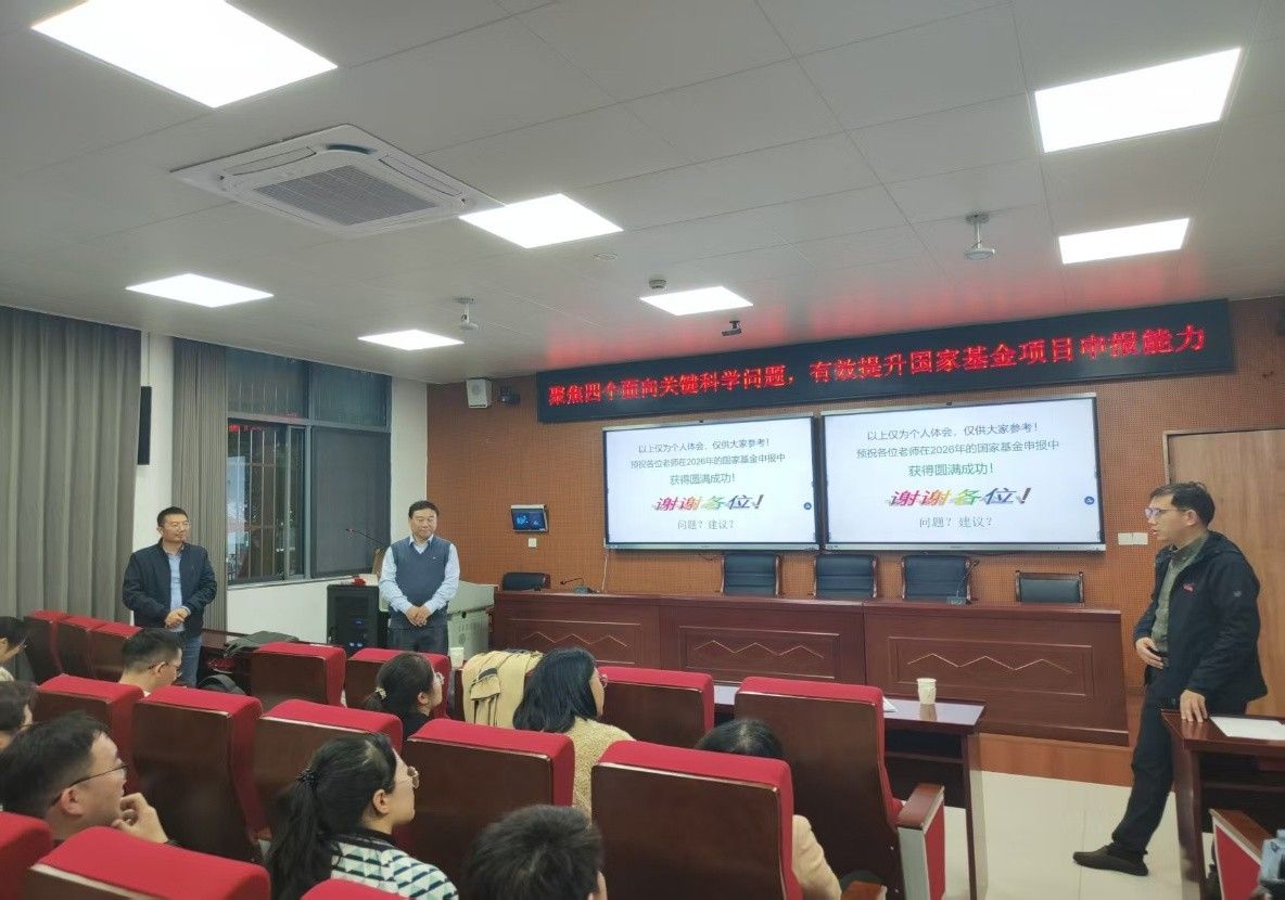 本次讲座以“国家自然科学基金申请书的关键要素和体会”为主题,结合佘教授成功申报国家自然科学基金的丰富经验,为与会师生带来全面而实用的分享。报告内容遵循从宏观构思到微观完善的逻辑主线,系统阐述了科学选题与申请书整体布局的策略,细致讲解了提纲编制的具体方法,并重点围绕核心内容的撰写、组织与持续优化展开剖析。通过典型案例的深入解读,佘教授着重指出了申报过程中的关键注意事项与常见误区,同时深度解析了项目的核心评审要素。整场讲座旨在助力听众全方位把握基金申报策略,切实提升申请书的质量与竞争力。